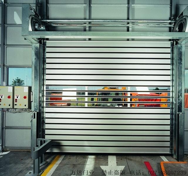 硬质德化快速门具有可靠性、实用性、耐久性、易操作性以及低 廉的维修费用和 低噪 音等性能。在工业应用中,每年正常无故障动作可达15万次以上。门板条为双层结构,可以抵抗强风和暴风雨及大雪的侵袭。根据需要,还可以将隔热铝制板条和透明的板条组合安装起来。板条在卷起时相互无接触,这样可以保持板条常年无变形、无磨损。另外板条之间也没有直接连接, 它们的两端是和可以卷绕的钢带螺接在一起,各板条之间用密封胶条连接,这样既可以节省空间,又可以保证门帘不变形,而且板条的更换也非常简单、快捷。